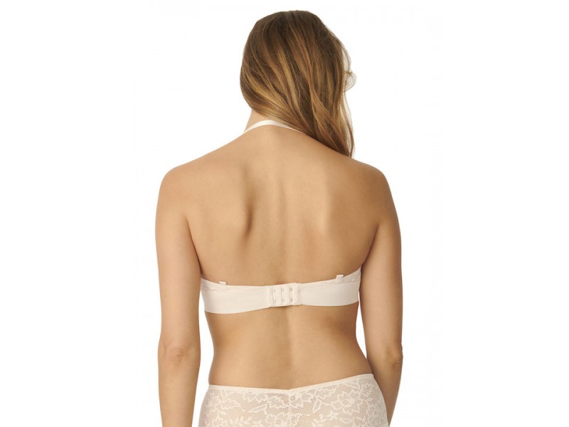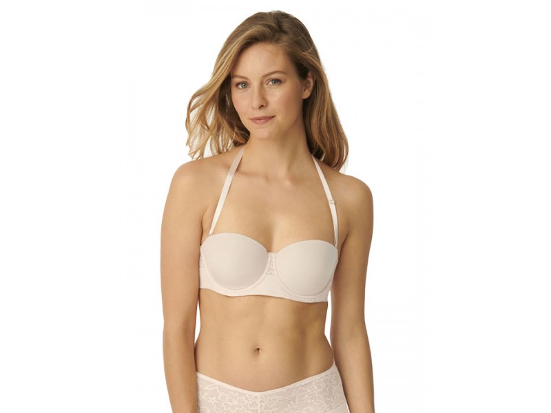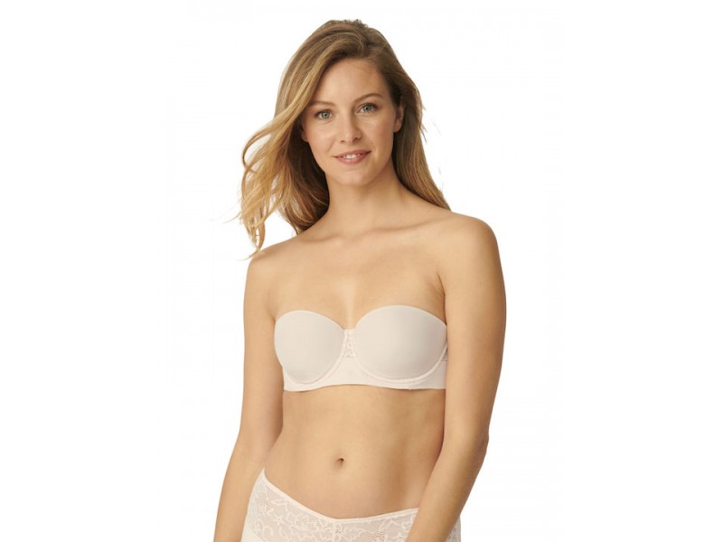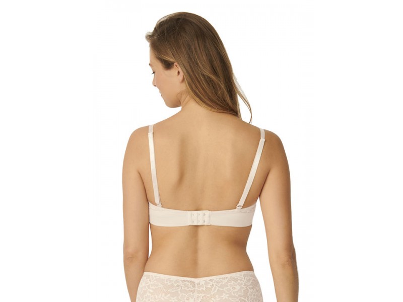 Smooth, pre-molded cups with floral lace, flat ends and removable straps. Perfect support and push-up in the bust even in large cups. Silicone band at the bottom for proper support in the strapless fit.